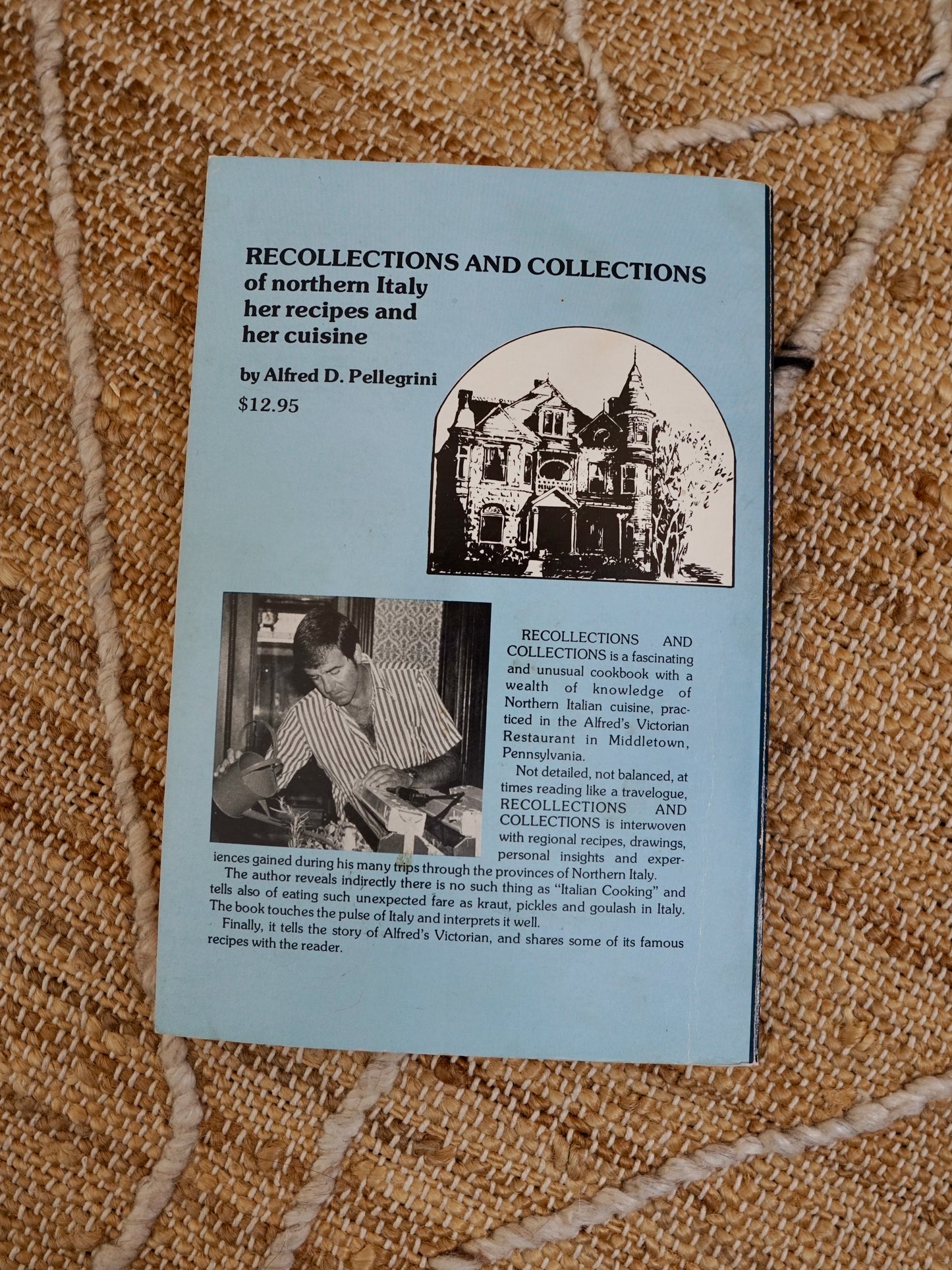 Vintage 90's book. Titled "Recollections and Collections of northern ITALY her recipes and her cuisine" Second Edition 1997, by Alfred D. Pellegrini. A fascinating and unusual cookbook with a wealth of knowledge of Northern Italian cuisine, practiced in the Alfred's Victorian Restaurant in Middletown, Pennsylvania. Softcover.